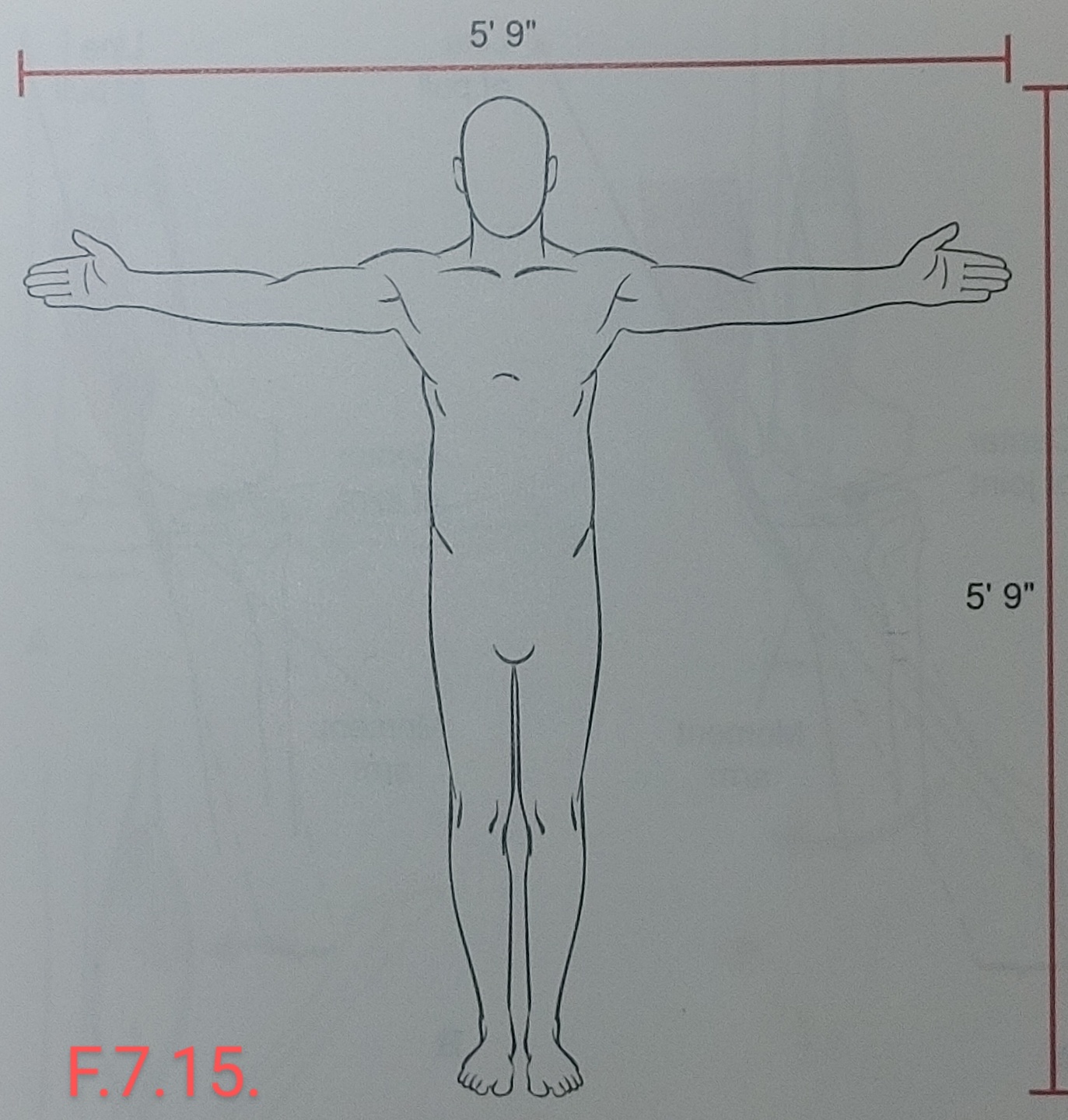 키와 팔의 길이이다. 성인의 뻗은 팔의 길이는 성인의 키와 같다(그림 7-15).