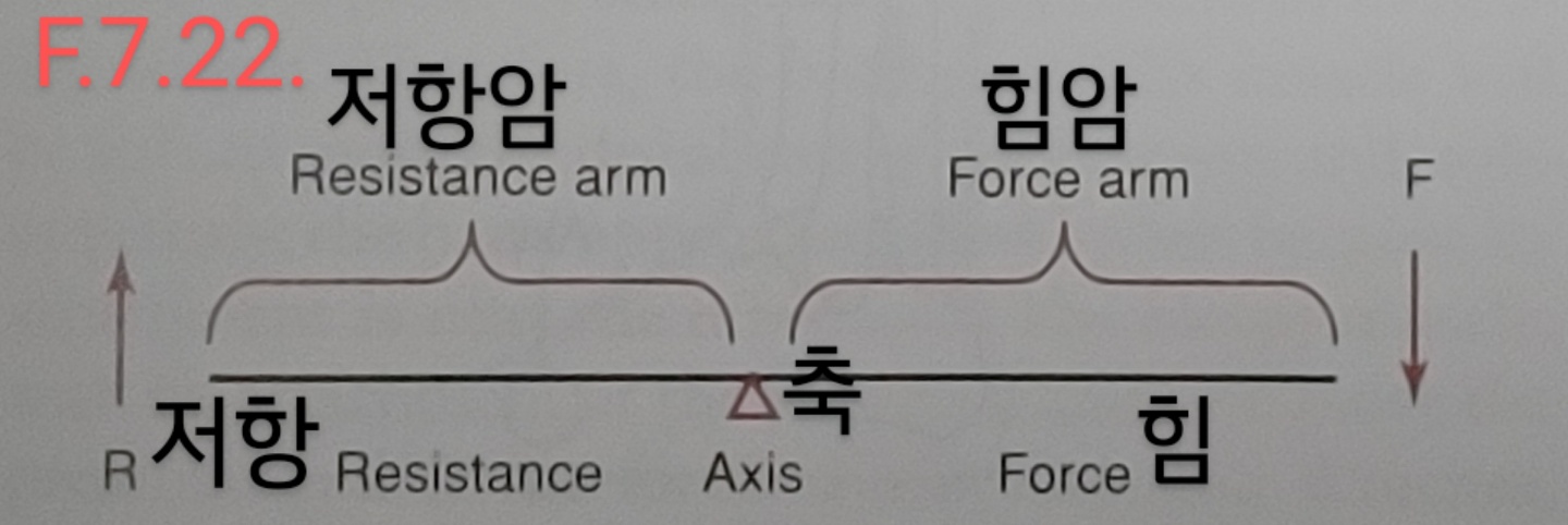 그림 7-23) 1등급 지렛대 FAR(F = 힘: A = 축, R = 저항)